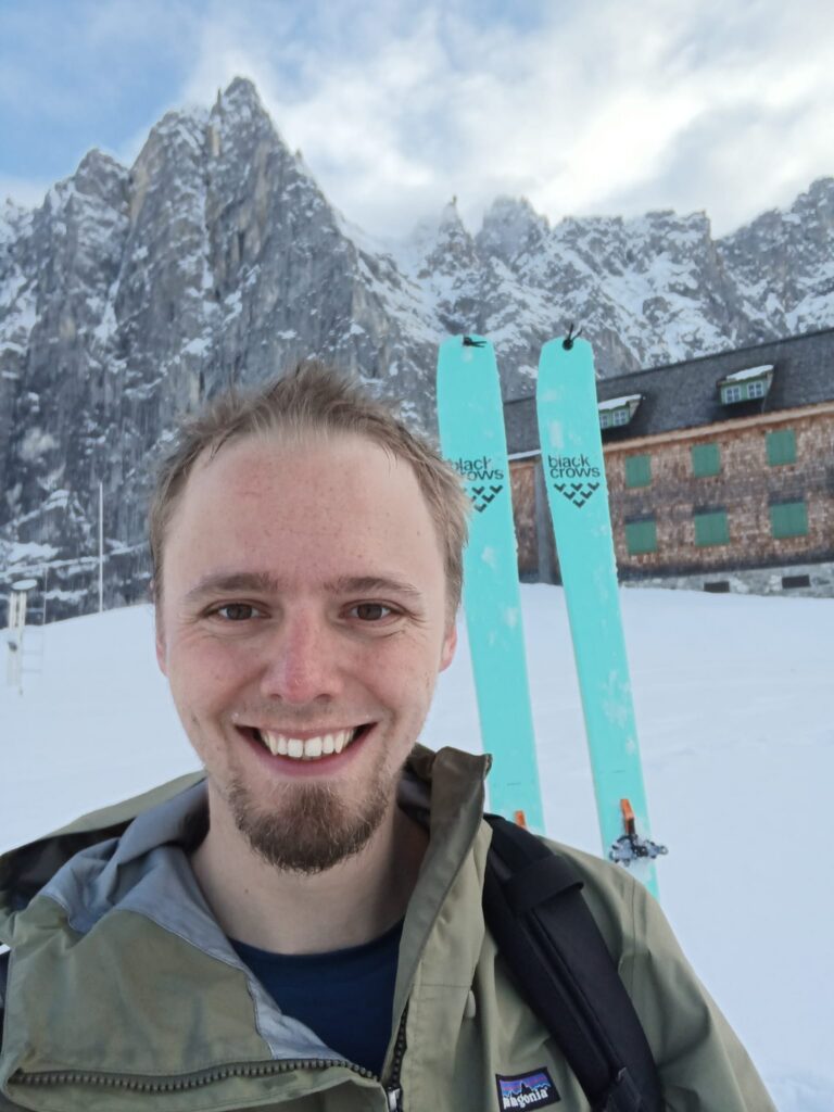 Leon is een van de fanatiekste van het stel: een echte berggeit die het liefst eindeloze traverses maakt en steile ijswanden beklimt. Of het nou gaat om toerskiën, ijsklimmen of “nog even een topje extra meepakken” – Leon is er altijd voor in.